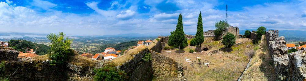 La población se congregaba en la ladera oriental de la cima del cerro, protegida por una muralla o barbacana exterior que fue levantada en época cristiana. Esta defensa, dotada de cinco torres redondas, tiene trazado poligonal y una longitud de 250 m., con una anchura media de 2 m. La fábrica es de mampostería de gran formato dispuesta en tongadas regulares convenientemente enripiadas. La cimentación se asienta sobre la misma roca. Algunas de las torres alcanzan los 20 m. de altura hacia el exterior. Como dato singular, uno de quiebros es aprovechado como coso taurino en las fiestas populares que se celebran cada año en la localidad. La entrada principal al recinto intramuros, conocida en la población como la «Puerta de la Villa», se abre en el lado sudeste y es de sillería con arco de medio punto, pudiendo fecharse en el s. XVI. Cabe citar, como curiosidad, los genitales tallados en la cara interior de esta puerta, a modo de talismán protector, tradición que proviene de la cultura romana (fascinum). Se conserva, además, una segunda puerta, de menor envergadura, adintelada, poco más que una poterna, en el flanco norte, conocida como «Puerta de Gata» por dar salida hacia esta población. Sabemos que en el siglo XVI se encargó también el proyecto de reparación de esta muralla a Pedro de Ybarra, siendo entonces de piedra y barro y estando caída en numerosos puntos, aunque en esta ocasión fue el maestro Domingo Simón quien llevó a cabo la obra.